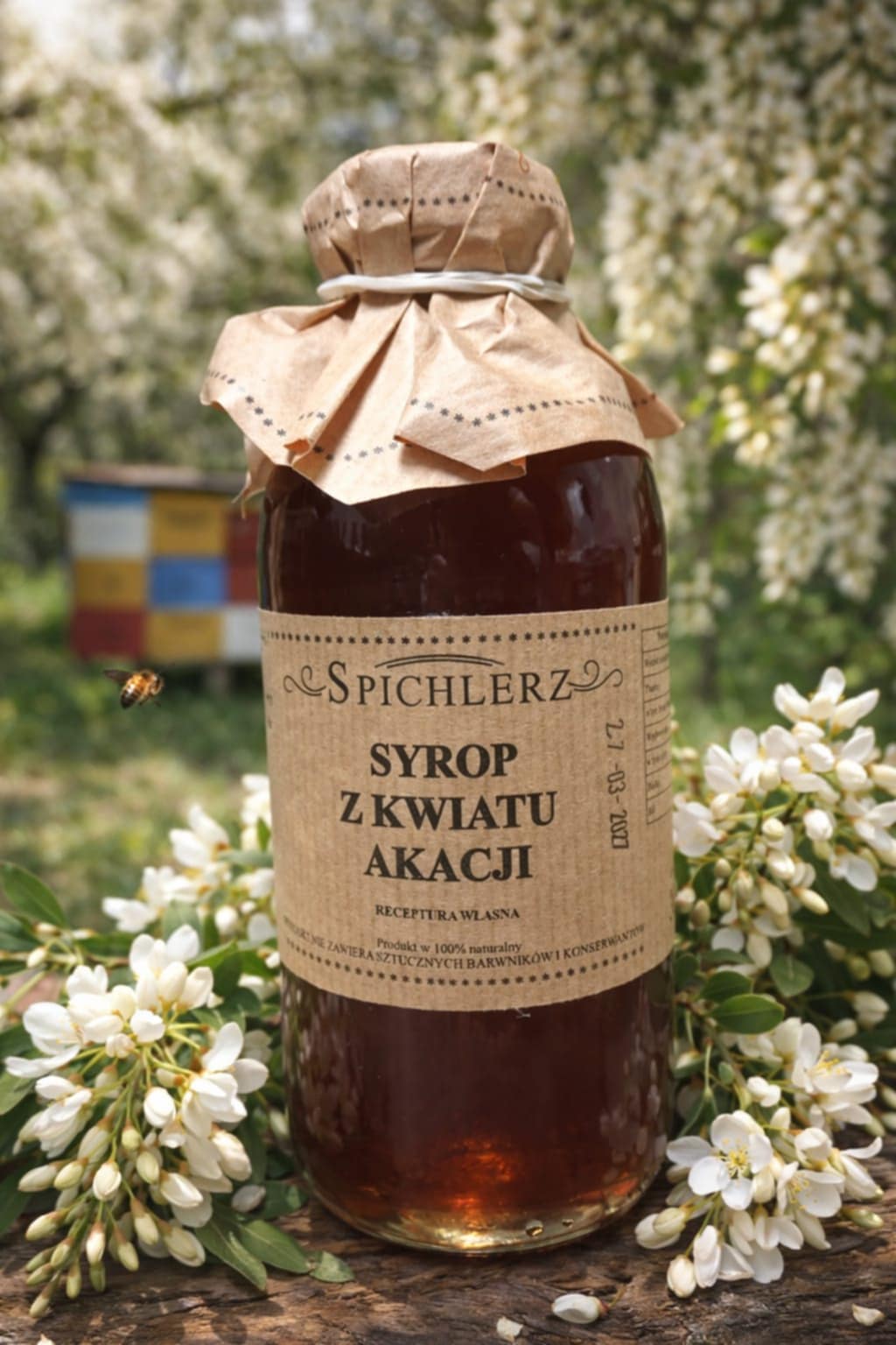 Skład: wyciąg z kwiatu akacji 60%, cukier, regulator kwasowości – sok z cytryn.