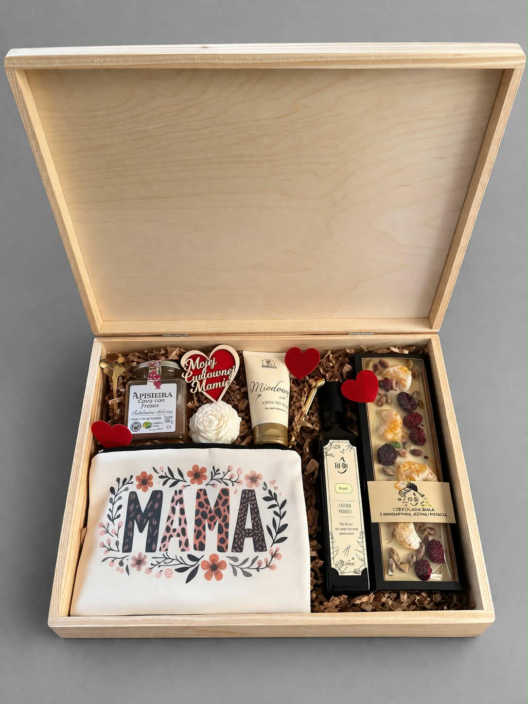Zestaw Na Dzień Mamy -drewniana skrzynka z kosmetyczką